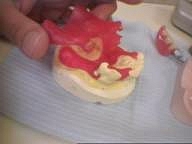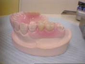 | 厚さや大きさをプラスティックで仮に作成し患者様にあったものを作成していく入れ歯 厚さが薄く小さいものは金属で作成していく。