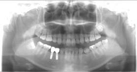 (骨の中にチタンのボルトを埋め込み歯の根が無いところに歯を作ることができる再生療法) |